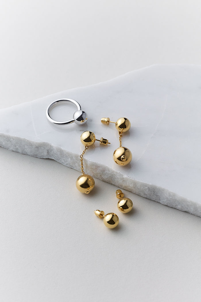 始まりも、終わりもない球体は「永遠」を表しているかのよう。流行に囚われることなく、いつ、どの時代にも印象的に映ります。究極にシンプルで、メタルの美しさが際立つピアス/イヤリング。揺れるボールが軽やかさを演出します。