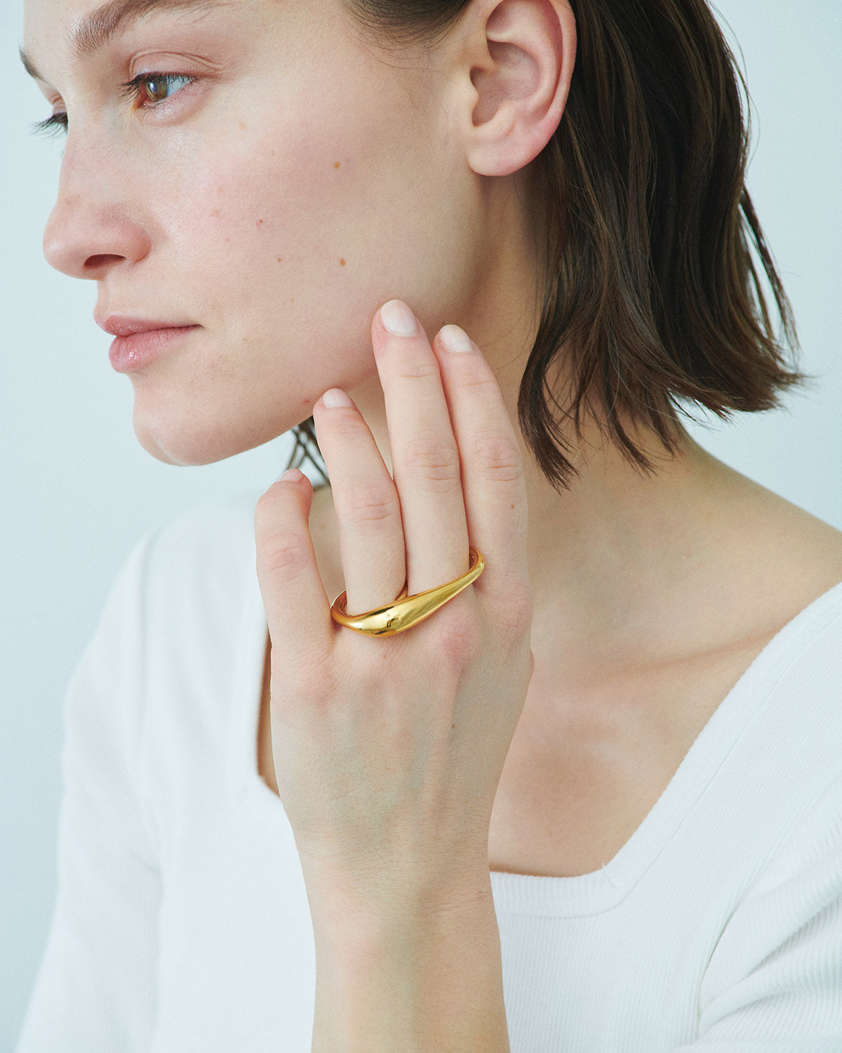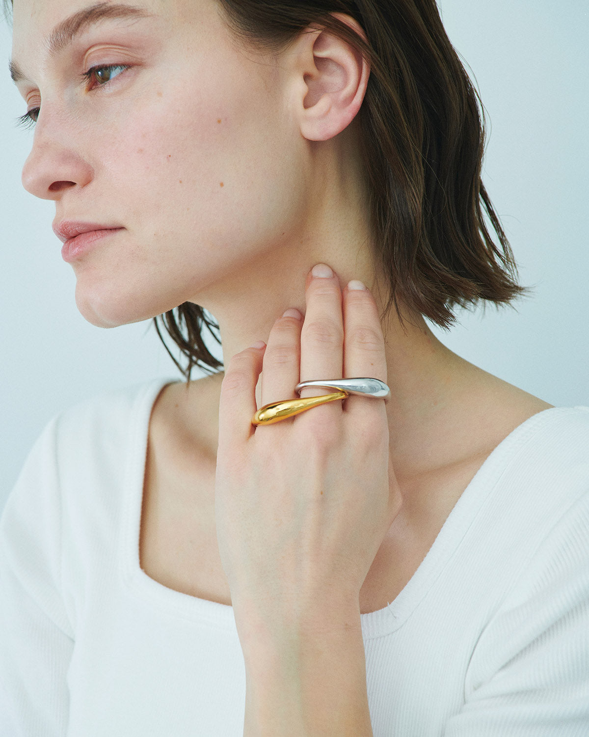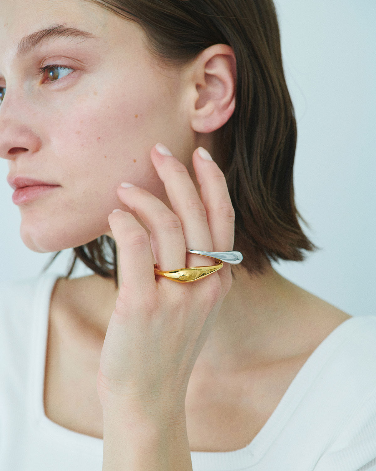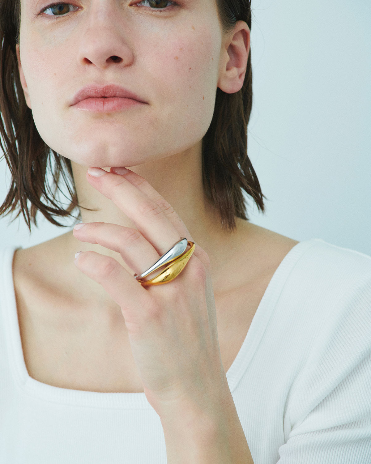 指に沿うようにセットされた曲線が美しいダブルフィンガーリング。