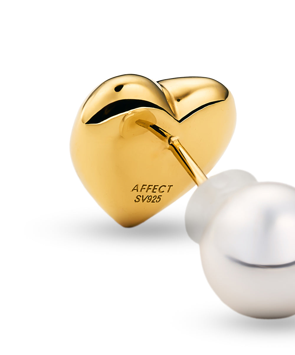 シンプルで艶やかなメタルの印象と、パールの柔らかい質感。後ろ姿まで美しい、AFFECTの【Pearl】シリーズのニューアイテム。スイートになりすぎないハートのスタッドピアスとキャッチの前後を入れ替えても様になる繊細にデザインされた2wayピアス。Gold/Silverの二色展開でご用意しております。
