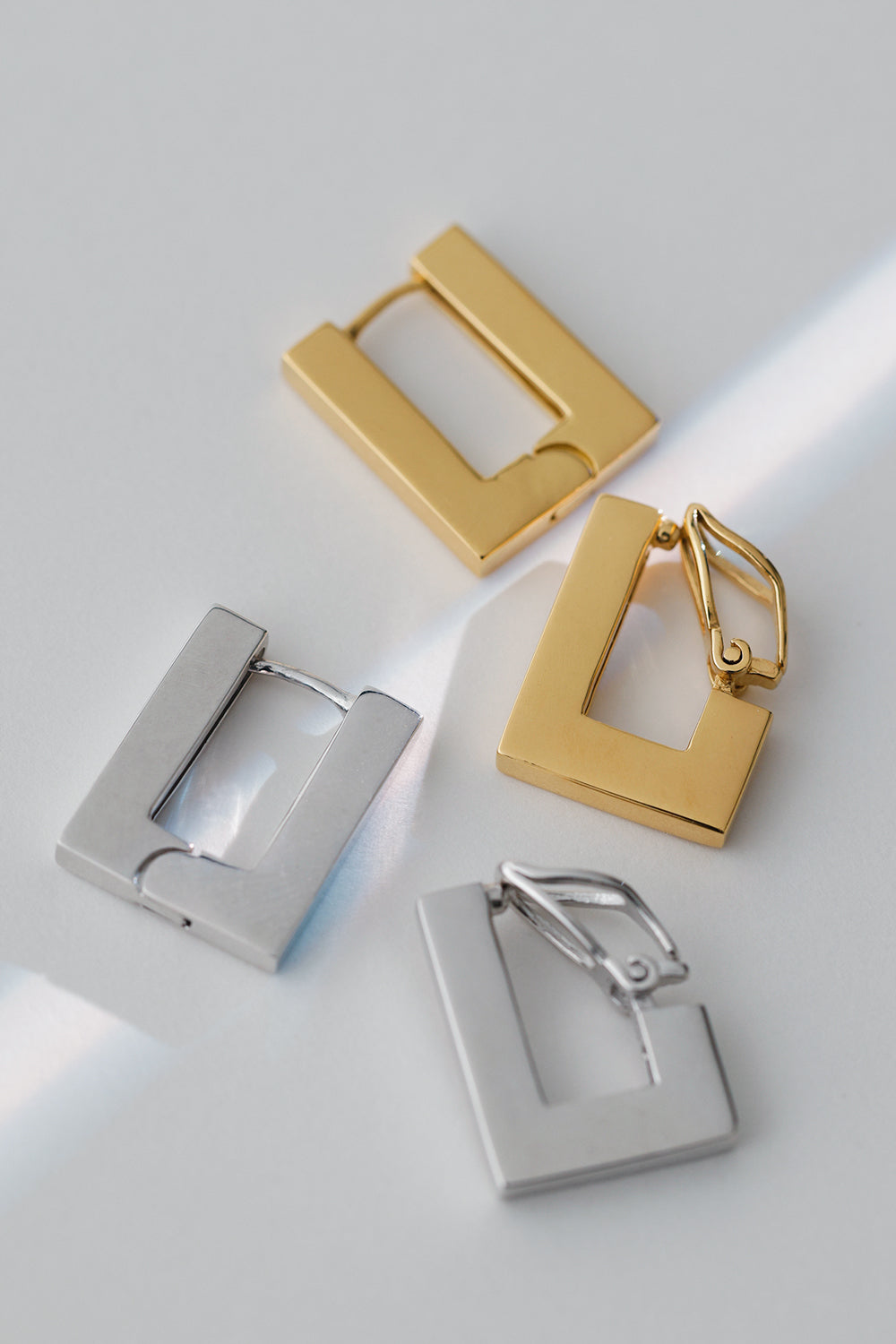 耳元を飾る、直線の美しさ。AFFECTの【EVERY】シリーズのニューアイテム。ジェンダーレスに使えるソリッドなレクタングル(長方形)のフープピアスはどの角度から見ても美しく印象を残します。Gold/Silverの二色展開でご用意しております。
